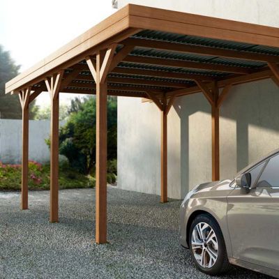 Voir plus didées sur le thème abri bois carport bois idées pergola. Quil soit plat ou bi-pente le toit de votre garage détient une pente suffisante pour lécoulement de leau. Carport en bois 560 x 278 cm CASTORAMA.